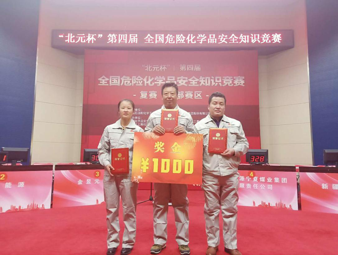 2018年12月7日,由中國石油和化學(xué)工業(yè)聯(lián)合會指導(dǎo),中國化學(xué)品安全協(xié)會、中國化工報社主辦,陜西北元化工集團(tuán)股份有限公司冠名,鄂爾多斯大路煤化工基地管委會協(xié)辦,國家能源寧夏煤業(yè)集團(tuán)有限責(zé)任公司承辦的“北元杯”第四屆全國危險化學(xué)品安全知識競賽西部區(qū)復(fù)賽在寧夏銀川寧東能源基地舉行。集團(tuán)公司受邀參加此次比賽,公司領(lǐng)導(dǎo)高度重視,經(jīng)過選拔,挑選出安全知識豐富、生產(chǎn)經(jīng)驗(yàn)較強(qiáng)、業(yè)務(wù)能力突出的3名員工組成代表隊(duì)及20多人組成的啦啦隊(duì)參加比賽,并獲得了第三名好成績。