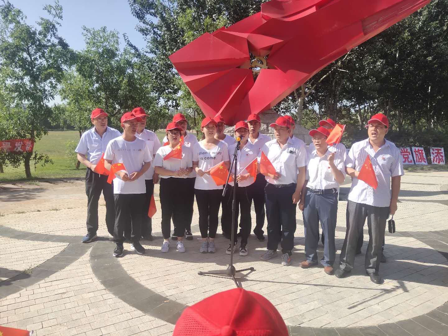 黨旗的鮮紅,經歷了八十四載的風風雨雨,依然鮮艷;黨徽的明亮,承載著八十四年的奮斗與夢想,歷久彌新。鮮紅的黨旗上,凝結著革命英烈的鮮血;共和國的旗幟上,飛揚著共產黨員的風采,他們,是中華民族永遠的豐碑!“我們走在大路上”“前進前進向前進”一句句嘹亮的歌聲飄到在黃河金岸的上空,金昱元的當員們以他們特殊的方式慶祝當的生日.他們要把我最甜美的歌獻給您——我們的母親,偉大的中國共產黨!他們謳歌偉大的祖國母親。