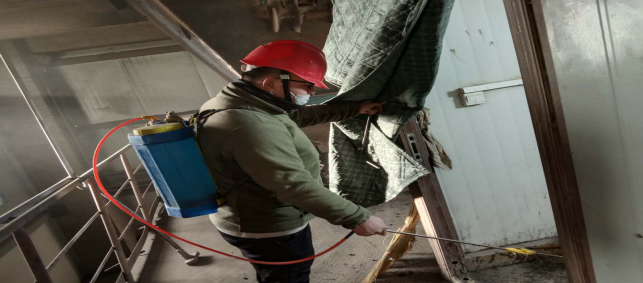 在宿舍進行衛生消毒。
