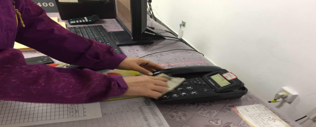 在崗位辦公室消毒。