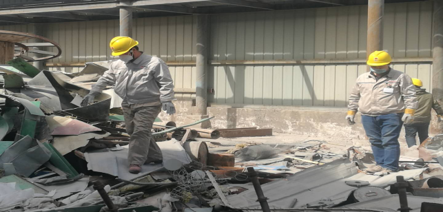 公司總經(jīng)理吳紅衛(wèi)帶領(lǐng)技術(shù)員以上管理人員及辦公室日勤人員身先力行,前往固廢堆放點(diǎn),對日常露天堆放的鐵皮、廢鋼管、廢油桶等進(jìn)行清理、整理。在他的帶領(lǐng)下,將一件件備件、固廢分類堆放,為即將開展的各類搶修、檢修工作作好準(zhǔn)備,努力實(shí)現(xiàn)降本增效。也再次展現(xiàn)了 大家不怕苦、不怕累、不怕臟的奉獻(xiàn)精神。通過此次活動,不僅進(jìn)一步改善廠容廠貌,還一定程度上改善了大家工作環(huán)境。