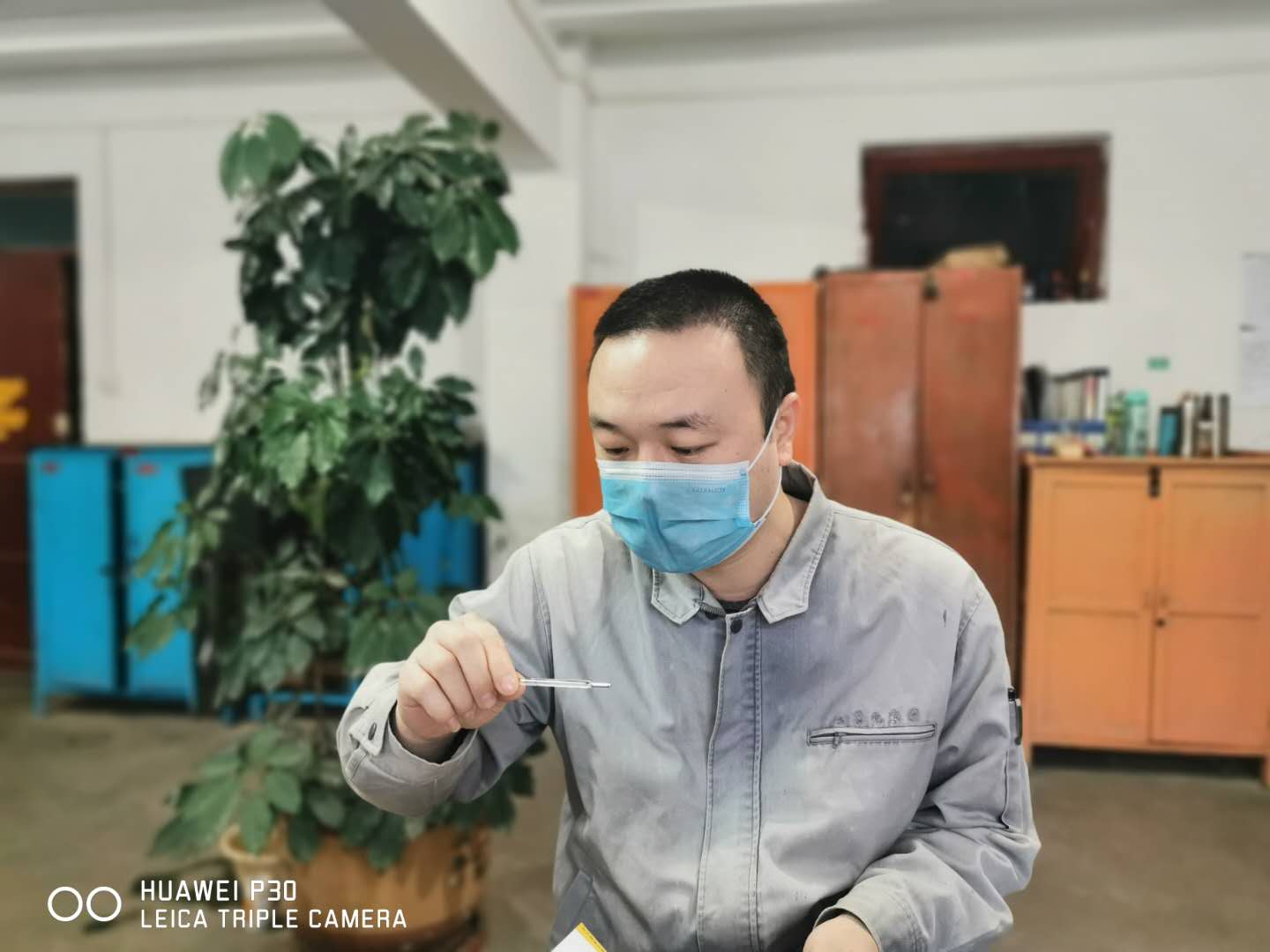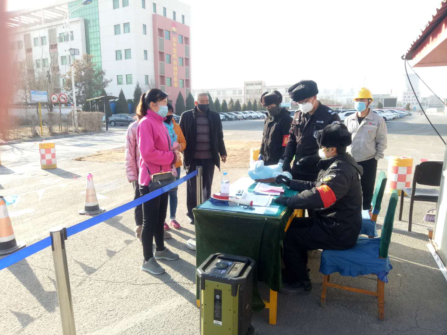 在廠門口,每天每位員工都自覺遵守著公司對疫情的各項措施。黨員、管理人員更是自覺輪值,嚴格執(zhí)行消毒措施,幫出勤人員體溫檢測和進出人員的檢查登記。從一項項措施中可以看出公司領導對疫情的重視。