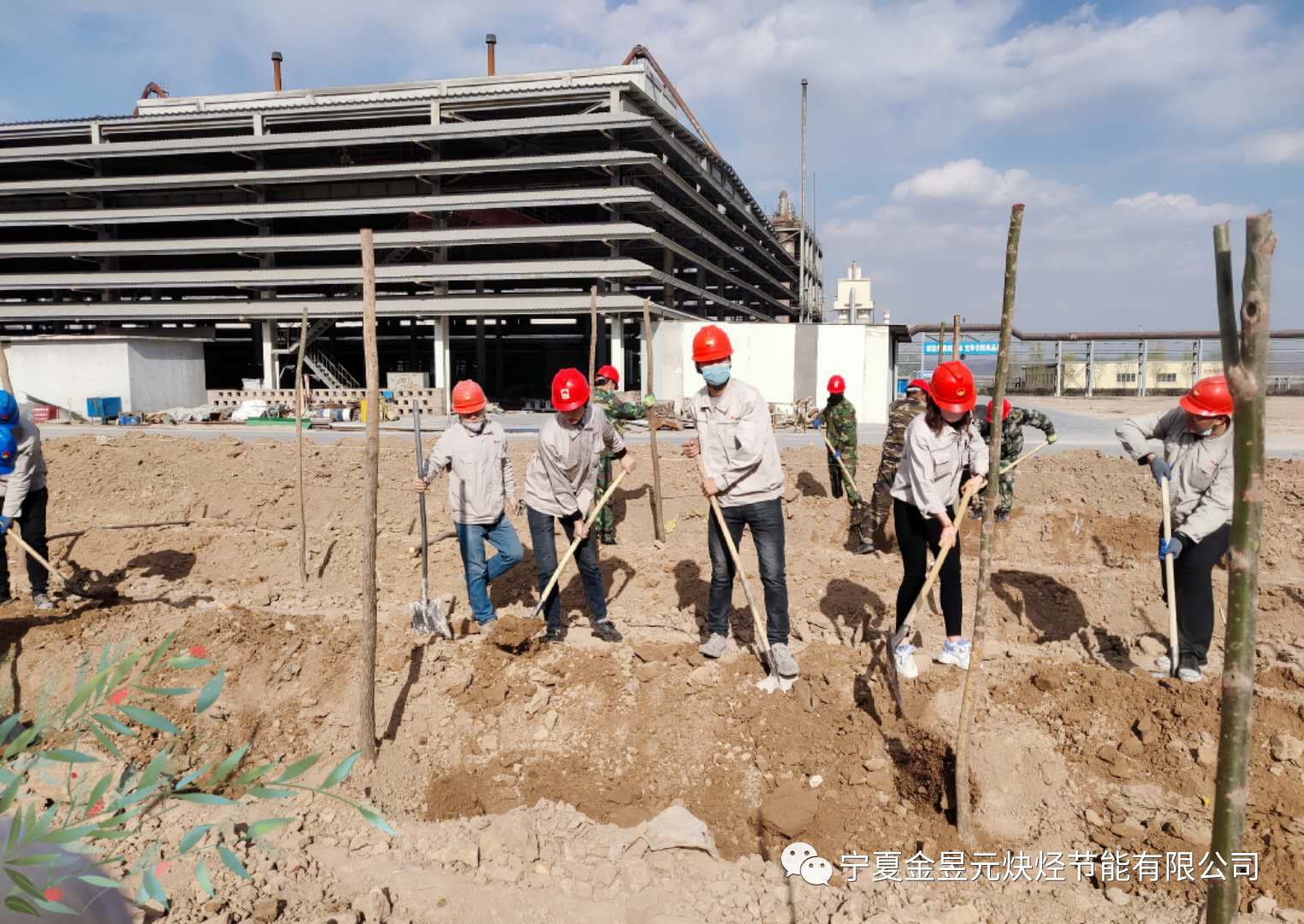 植樹現場,干部與職工齊心協力,呈現出一派熱鬧繁忙的景象。經過一番緊張的勞動,幾百棵新栽下的樹苗昂然挺立,為春光明媚的四月增添了一抹盎然的綠意。