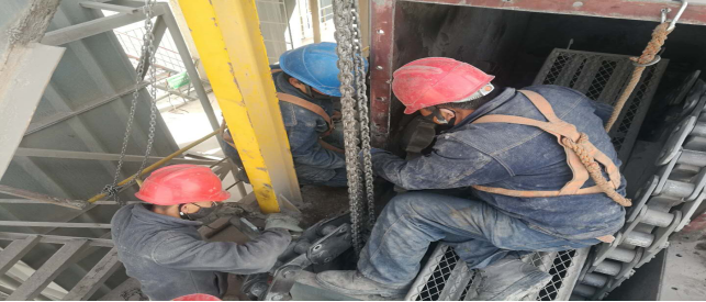 在1909斗提機(jī)尾輪、板鏈、料斗及機(jī)頭,進(jìn)行拆除更換。已完成機(jī)頭更換。