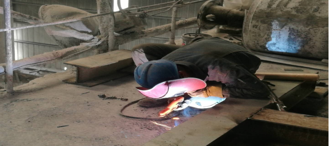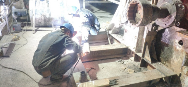 8)回轉窯輪帶擋圈及墊板補焊加固,檢查大齒圈齒面磨損并對齒面打磨修復(未完成);