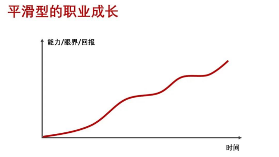 畫圖來顯示,就是下面這樣,你的職業成長路徑應該是一條非常平滑的曲線: