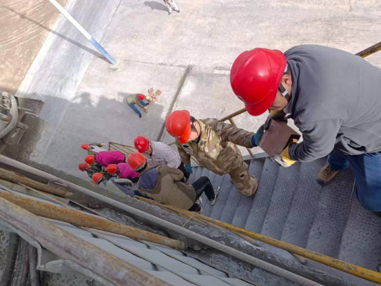 4月11日晚間22時50分許,回轉窯筒體24.5米處出現紅窯現象,根據經驗,初步判斷是窯磚脫落。回轉窯系統止料,計劃挖補。安環生產科科長張振忠得知消息后,立即向各級領導進行了逐級匯報,他們不約而同的在第一時間趕回廠里,立即采取相應措施,迅速組織搶修。12日凌晨1:40分許,全體管理人員及崗位巡檢人員頂著寒風,組織實施第一步搶搶修工作——打開窯門,進行降溫。上午8:00分,公司領導緊急召開搶修前技術和安全交底,調集人員,冒著窯內高溫,進行邊卸料邊轉運邊挖補工作。按照分工,全體參戰人員都在緊張有序的忙碌著。
