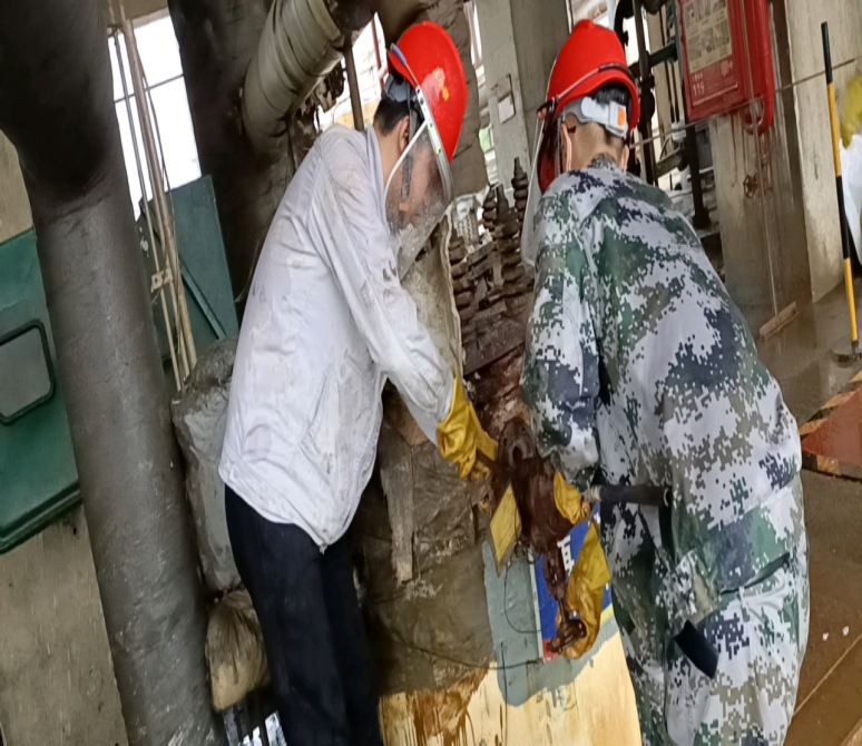 為了保證安全、優(yōu)質(zhì)、高效地完成任務(wù),在班長黃小龍的帶領(lǐng)下,進行零脫析再沸器管線拆除安全技術(shù)交底,裝置工藝技術(shù)員張?zhí)烊适俏覀兊谋O(jiān)護人,除此之外,單位領(lǐng)導(dǎo)更是親自到檢修一線指導(dǎo)工作,把安全關(guān),把質(zhì)量關(guān),隨時協(xié)調(diào)處理現(xiàn)場遇到的問題。