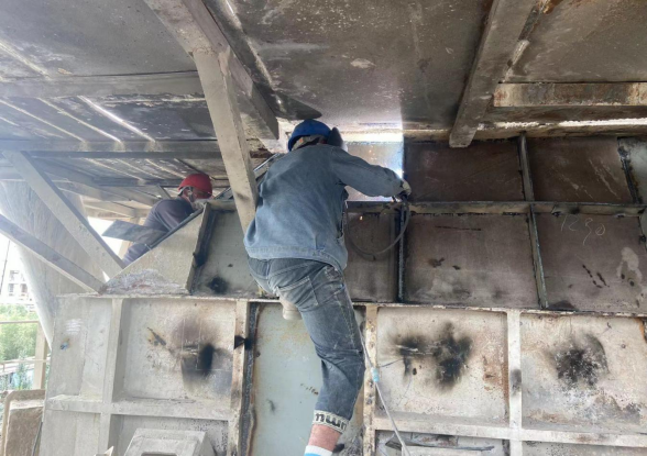 記的有一次設(shè)備大搶修,余偉和幾位維修師傅更換篦冷機(jī)2623拉鏈機(jī)導(dǎo)軌和鏈條。那天,正逢夏季烈日炙烤;但是由于搶修任務(wù)緊,絲毫沒有喘氣緩一下地機(jī)會。一道道美麗的電焊弧光照亮了那早已汗水打濕的臉頰,臉頰上布滿了灰塵和晶瑩的汗珠,那才是體現(xiàn)出來的一種愛崗敬業(yè)的美。