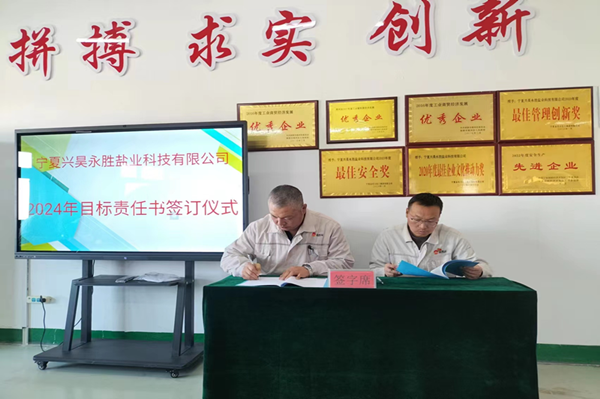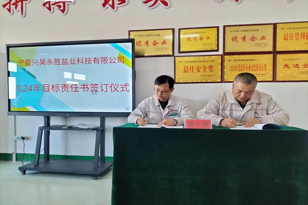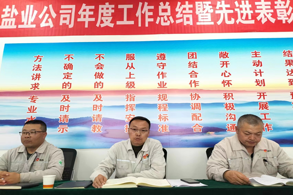 2024年1月8日下午,鹽業公司組織召開了2023年度總結表彰暨2024年目標責任書簽訂大會。會議由總經理尚繼榮同志主持,副經理、科室長、裝置長、受獎人員及員工代表參加。