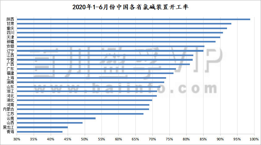 我們分析,開工負荷下調的原因:2月份由于國際公共衛生事件影響,道路運輸不暢,原材料到廠難、液氯出貨壓力大等問題制約了堿廠開工,其中最為明顯的是湖北省燒堿裝置開工率僅2-3成,2月份中國燒堿平均開工率跌至65.56%;4-6月份國際疫情影響發酵,大宗商品產業鏈上各品種的進出口貿易受挫,燒堿難以獨善其身,銷售與成本壓力使得行業整體開工率下滑。