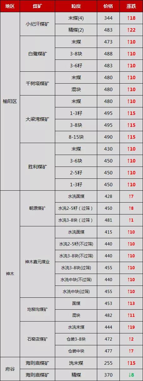 近日,榆林煤礦地銷價(jià)持續(xù)上漲,主要因?yàn)榇笮偷V井都以保鐵路發(fā)運(yùn)為主,地銷量非常少,所以許多地銷客戶只能從小型礦井拉運(yùn),助推煤價(jià)上漲。 比如,目前榆陽(yáng)區(qū)小紀(jì)汗煤礦、杭來(lái)灣煤礦、榆樹灣煤礦、金雞灘煤礦地銷量非常少,所以榆陽(yáng)區(qū)其他小礦持續(xù)上調(diào)價(jià)格。  最新調(diào)價(jià)表: