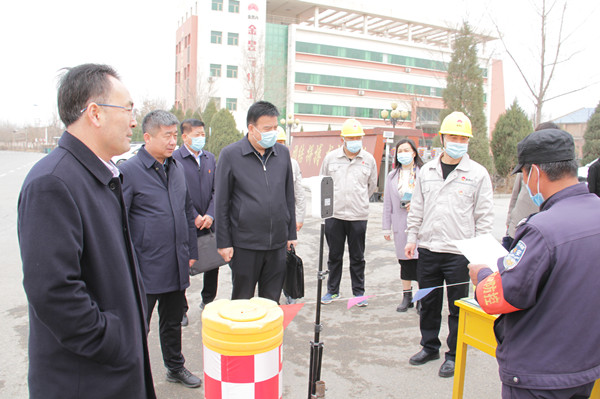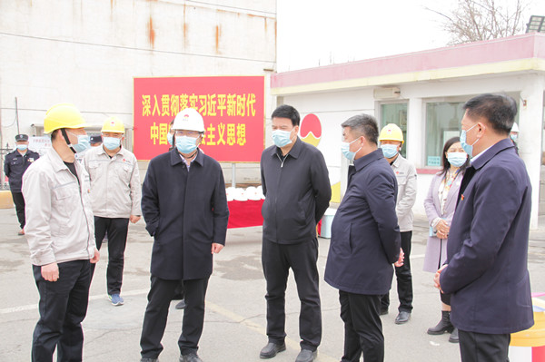 調研組深入一線,了解集團公司疫情防控情況,并聆聽工作人員宣讀《入廠安全教育》。