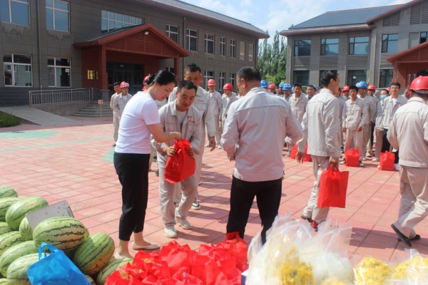 青銅峽市總工會和固原經濟開發區總工會為集團公司送來西瓜、礦泉水、金絲菊、冰糖等防暑物品,表達對企業一線員工關心和厚愛。