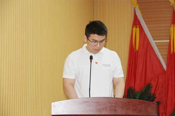 新黨員代表李愛(ài)軍作表態(tài)發(fā)言。他號(hào)召?gòu)V大黨員不忘初心,勇挑重?fù)?dān)、銳意進(jìn)取,時(shí)刻為企業(yè)發(fā)展和國(guó)家建設(shè)貢獻(xiàn)智慧與力量。
